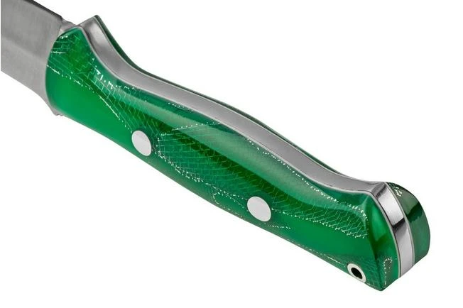The Bark River Bravo 1.2 CPM 3V Green Cyclone Mesh White Liner is designed for (para)military use, specifically for the U.S. Marine Corps. Soon, however, it became clear that this knife could do so much more. Today, the Bravo 1 is a beloved knife amongst bushcraft enthusiasts and hunters. It is solidly constructed, with enough blade thickness for heavy-duty tasks. Perfect for wood work, gutting game and many other outdoor tasks.