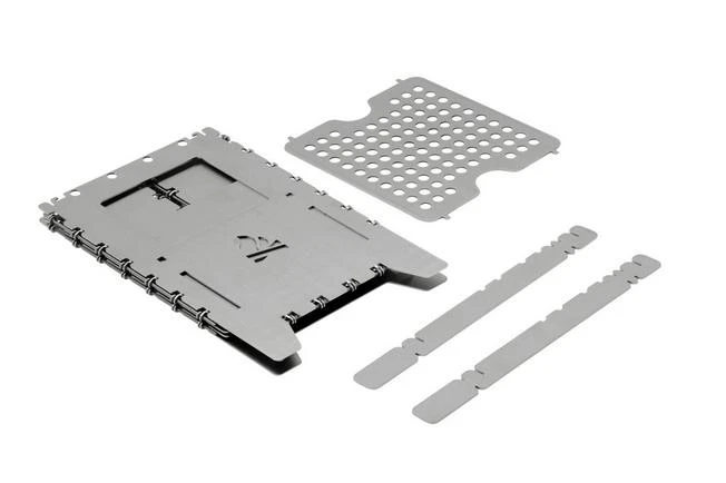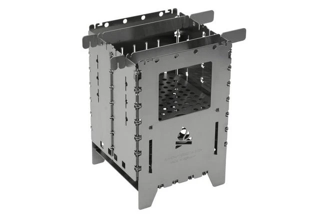 The Bushcraft Essentials Bushbox XL kit is a complete kit with stove, grill plate and a solid storage bag. The great thing about this stove is that it is so easy to assemble. The only thing you have to do is fold it open. Within seconds it will be good to go, enabling you to start your fire. You only need a little fuel to cook, the air supply is namely incredibly efficient. Also, the sides properly protect your fire from the wind. This Bushbox works with branches and biomass, but you can also use it with a methane burner. From Trangia, for instance. But that is not all. The Bushbox can also handle Esbit blocks, charcoal and much more.
