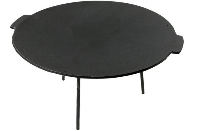 The Eagle Stekehelle is a large griddle/fire bowl made from cast iron. You place the griddle over hot coals or an open flame. Thanks to the 6 mm thick cast iron the griddle evenly heats up and also retains that heat for a long time. Cast iron is not stainless. That is why you should store it somewhere dry and rub a coat of oil on the surface if you won’t use it for a while.