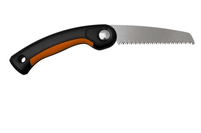 The Fiskars Plus SW68 folding saw is a small, practical saw. Perfect for pruning work in the garden or to take with you on your bushcrafting trip. You can lock the saw blade in three different positions: straight for general use, undercut to make nice starting cuts at the base of a branch, and pistol grip for extra leverage. Parts of the handle are non-slip, so you always have a good grip on the saw. The SW68 saws on the pulling motion. That means that the saw does all the work for you. Great!
