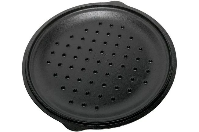 The Lodge Skillet lid for frying pans ensures that moisture and flavours stay inside your frying pan. it properly seals off the pan, and the special tips ensure that the moisture returns to your dish. Perfect when preparing a stew, or to end up with the perfect chili. The handle ensures that you can easily lift the lid. It will heat up, so always make sure you take hold of the pan with an oven mitt.