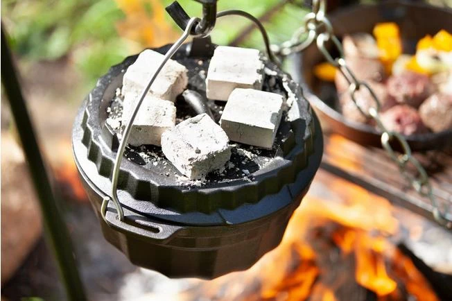 The Petromax Cake Ring GF1 is not only perfect when preparing the most delicious cakes. You can also easily use it to prepare bread or stews. The lid ensures that you can bake at very high temperatures in your oven or over an open flame. The edges of the lid are elevated to make sure you can easily place coals on top. As such the heat is evenly distributed as you prepare your cake, bread or stew. Turn over the lid and use it as a cake tin. The handle enables you to also easily hang the pan over an open flame.