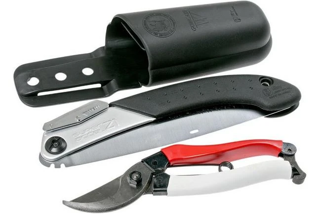 This pruning set is comprised of the de Okatsune KST103 pruning shears and the Silky Super Accel 21 pruning saw, combined in a practical Comcase belt holster.
