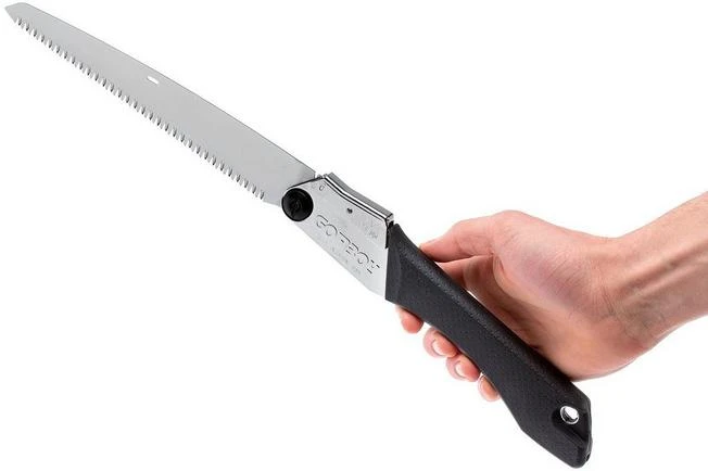The Silky Gomboy is a useful folding saw perfect for outdoor use. When you go out always bring a compact light-weight folding saw to accompany your knife and axe. When you do you will be more flexible when it comes to collecting wood for your camp(fire). The handle is made from comfortable rubber material and feels great in hand. The blade is made from a type of stainless steel.