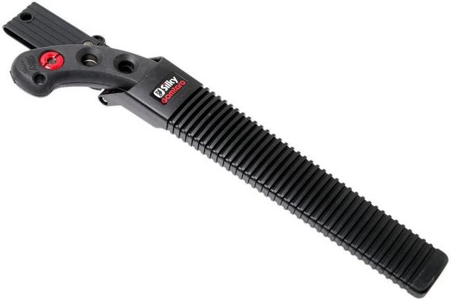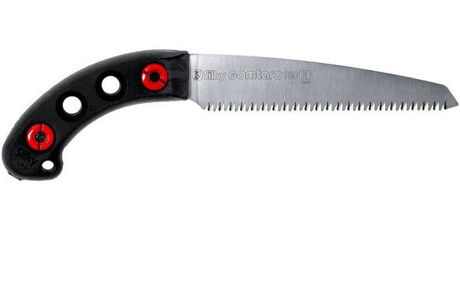 The Silky Gomtaro is a practical, fixed pruning saw. You use it to prune trees and shrubs. Because it has a fixed blade you don’t have to worry about it closing when you don’t want it to. In addition, when you have a fixed Silky blade you can perfectly align the shape and the ratio between the handle and the blade. Some believe that that is why the Gomtaro is even better to work with.