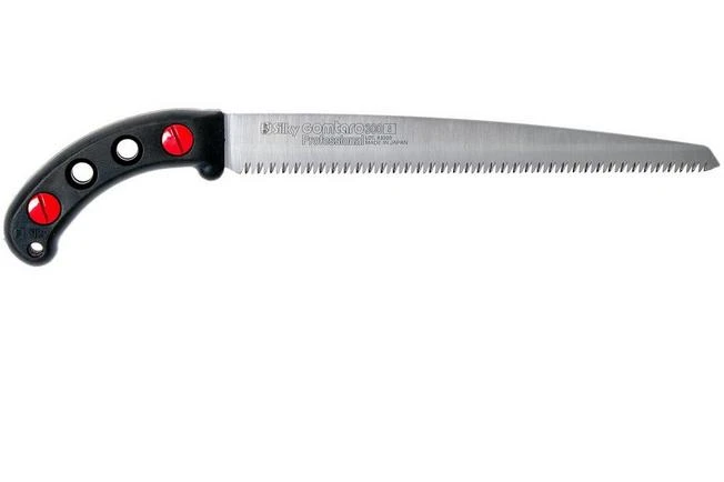 The Silky Gomtaro is a practical, fixed pruning saw. You use it to prune trees and shrubs. Because it has a fixed blade you don’t have to worry about it closing when you don’t want it to. In addition, when you have a fixed Silky blade you can perfectly align the shape and the ratio between the handle and the blade. Some believe that that is why the Gomtaro is even better to work with.