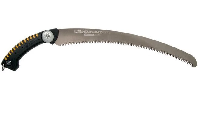 The Silky Sugoi 420-6.5 is a practical, fixed pruning saw for professional arborists. The shape and proportion between the handle and the blade is perfectly aligned.